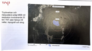 - Risk för explosioner och tryckvågor baseras säkerhetsavstånden inte på hypotetiska katastrofscenarier, utan på detaljerade riskanalyser enligt svensk och europeisk lagstiftning. Bebyggelse på andra sidan sjön ligger utanför fastställda riskområden som du kan se i det underlag som finns längst ner. Vi tycker att det i denna fråga är viktigt att lita på myndigheters bedömningar då det finns lång erfarenhet av dessa frågor i vårt närområde. Även om vi inte tillverkat TNT bygger det ju på kemikalier.