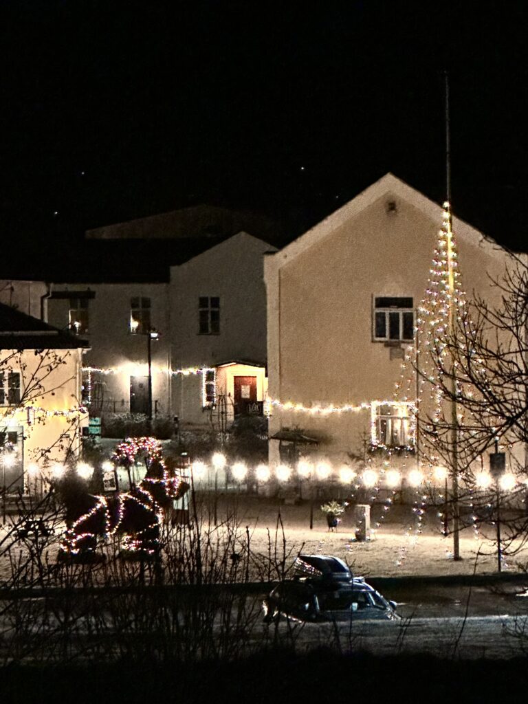 Nu är det jul! Da’n före doppareda’n fick vi dessutom ett tunnt täcke vitt som lyser upp staden!